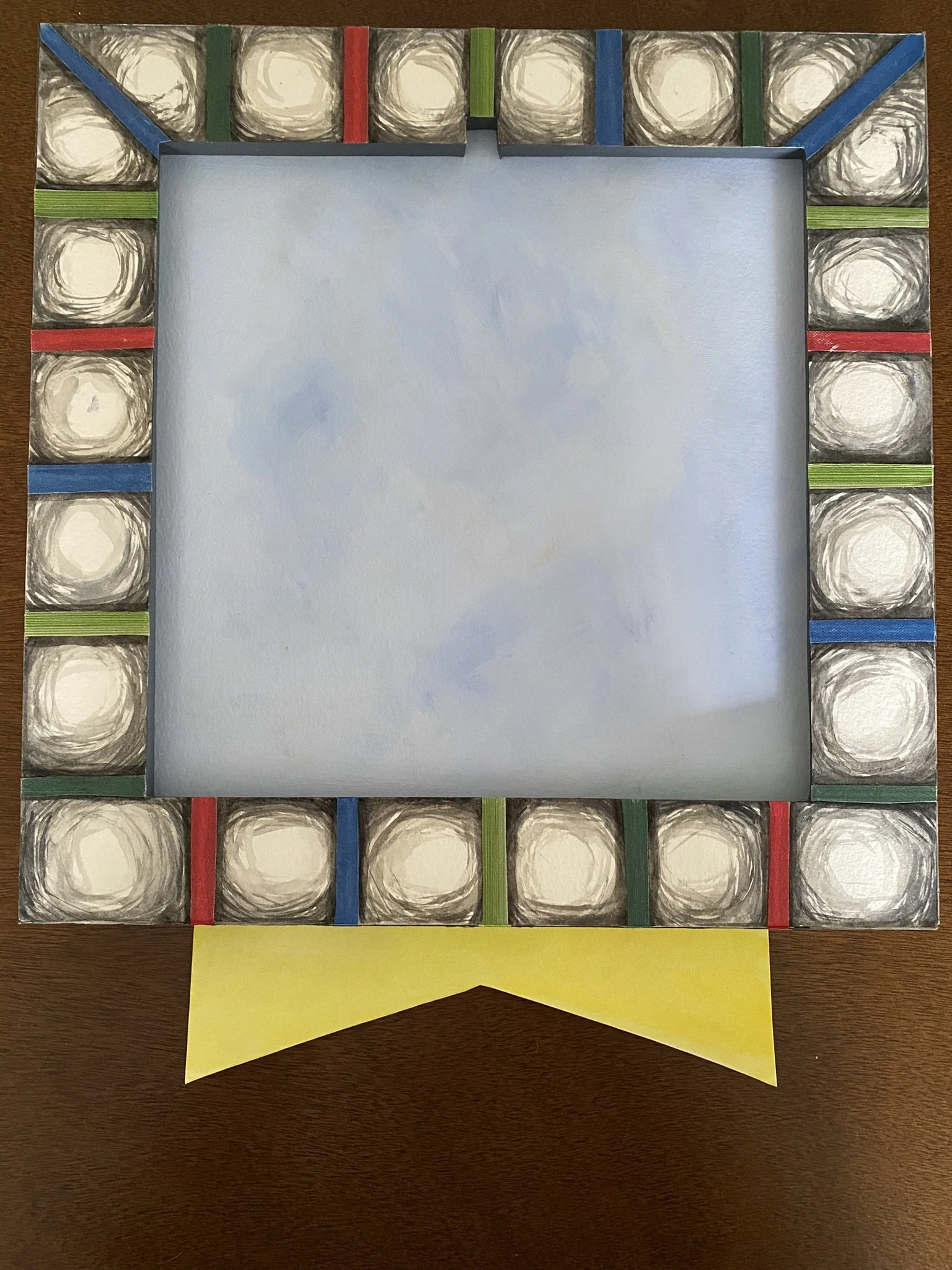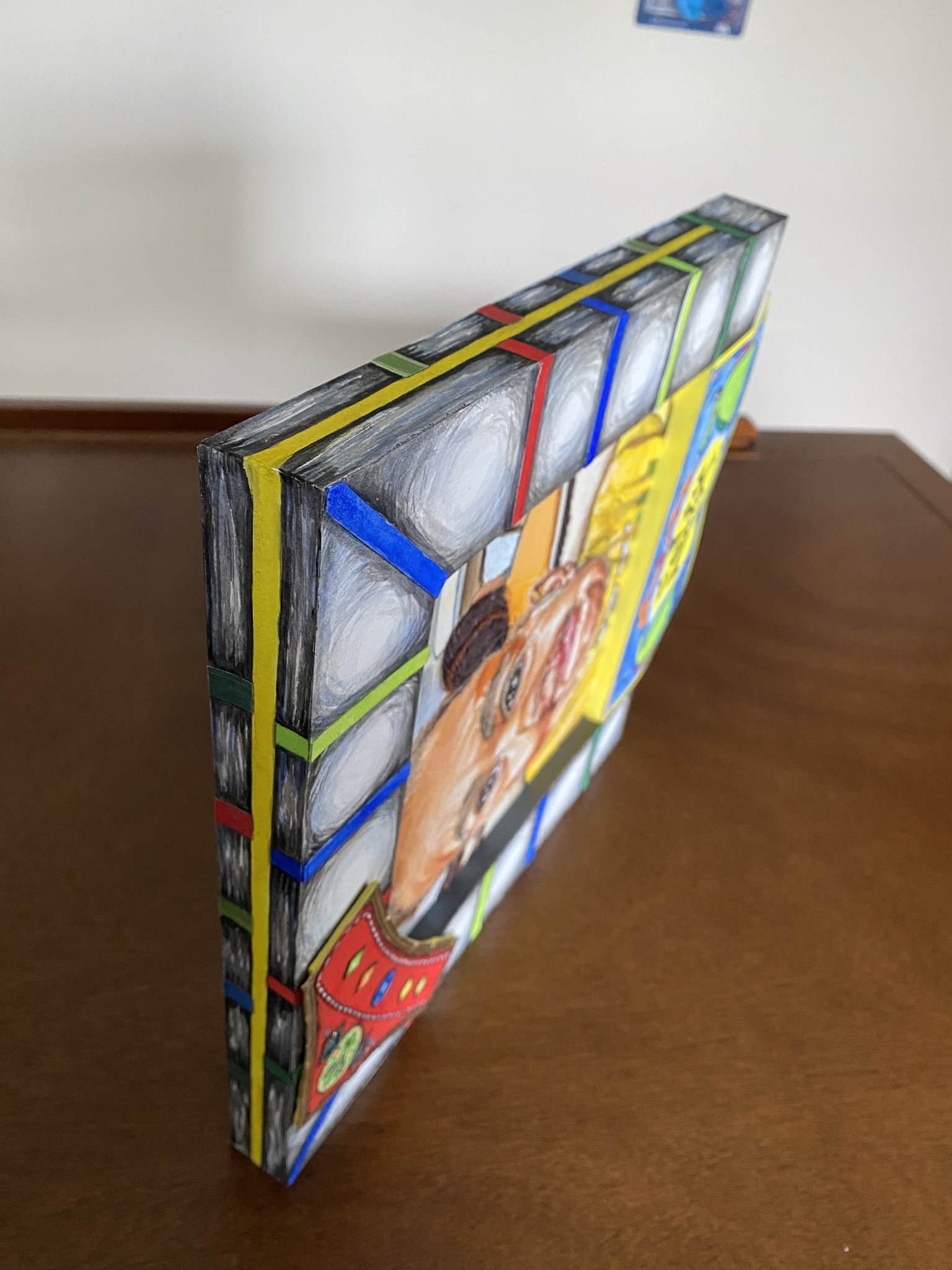 , 12” x 16” x 1”, watercolor, pen and fabric on foamboard and watercolor paper