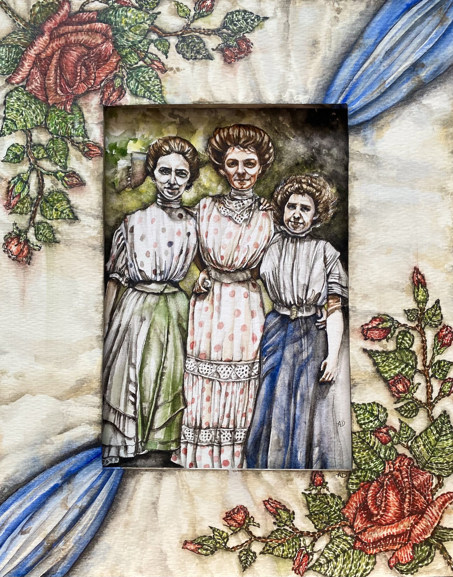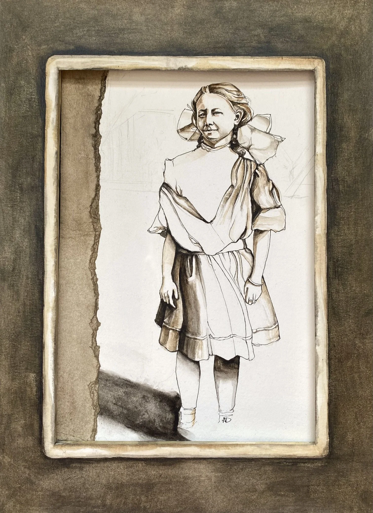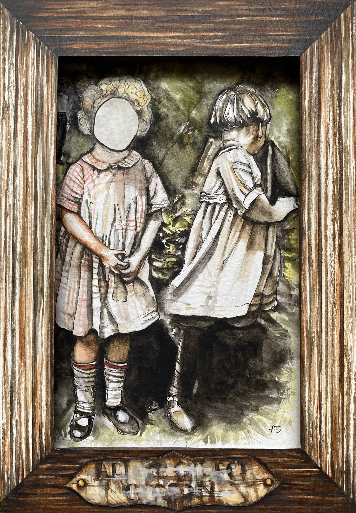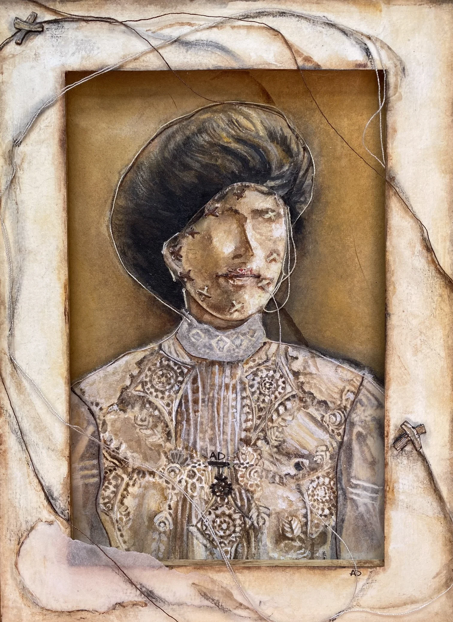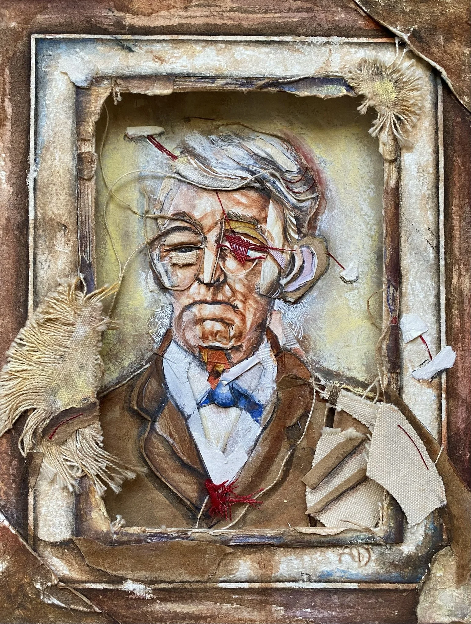 These pieces represent personal family members, Flea Market photos, and commissioned work. Click on each piece for details, a view of the frame back, the original photo, or both. Some of these are missing the back frame photo because they’re earlier pieces, back when I affixed them to canvases. If you’re interested in having one of your photos turned into a portrait with frame, send me an email!