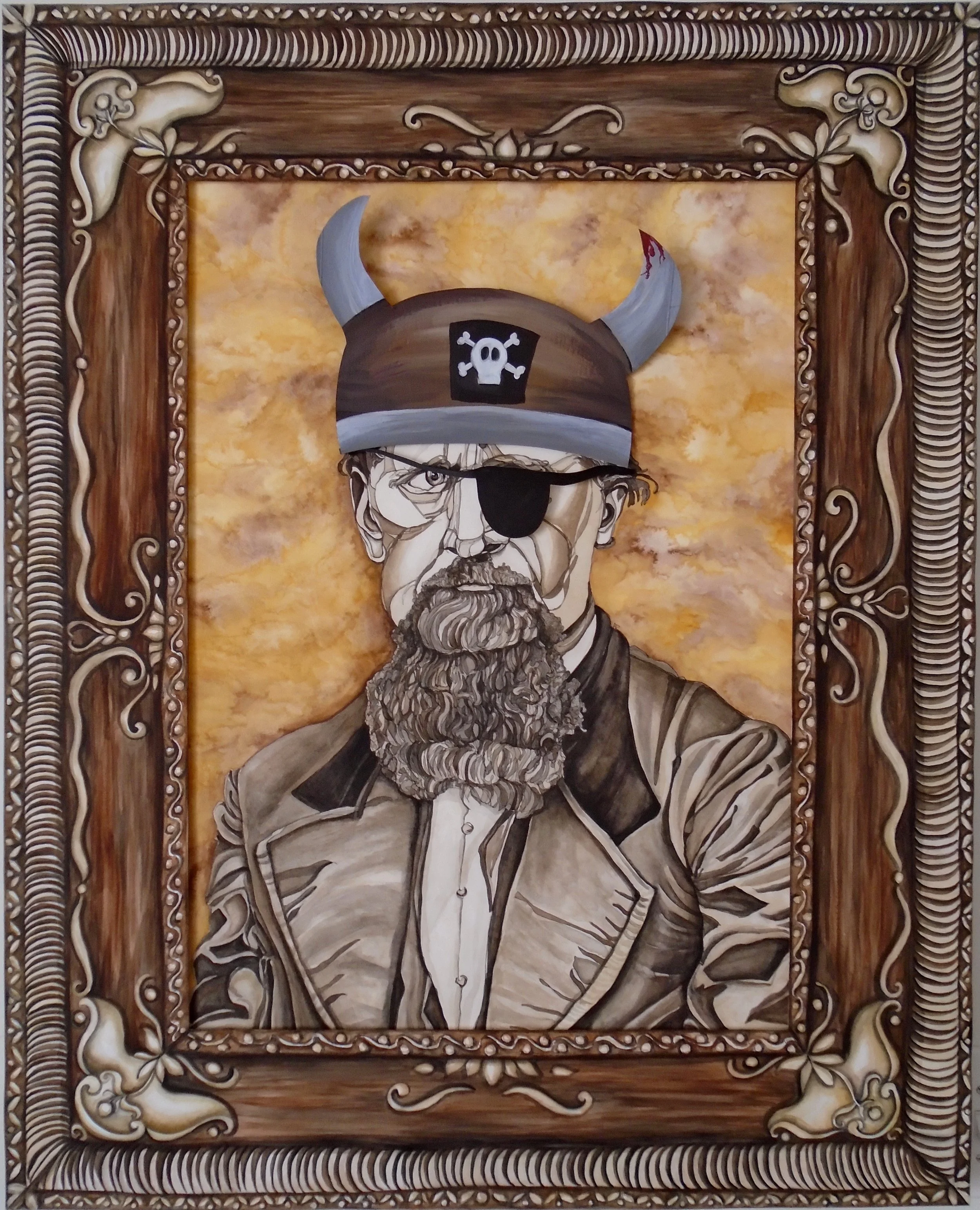 Jacob Craun, 33” x 40”, watercolor, acrylic paint, and pen on canvas, foamboard, and watercolor paper