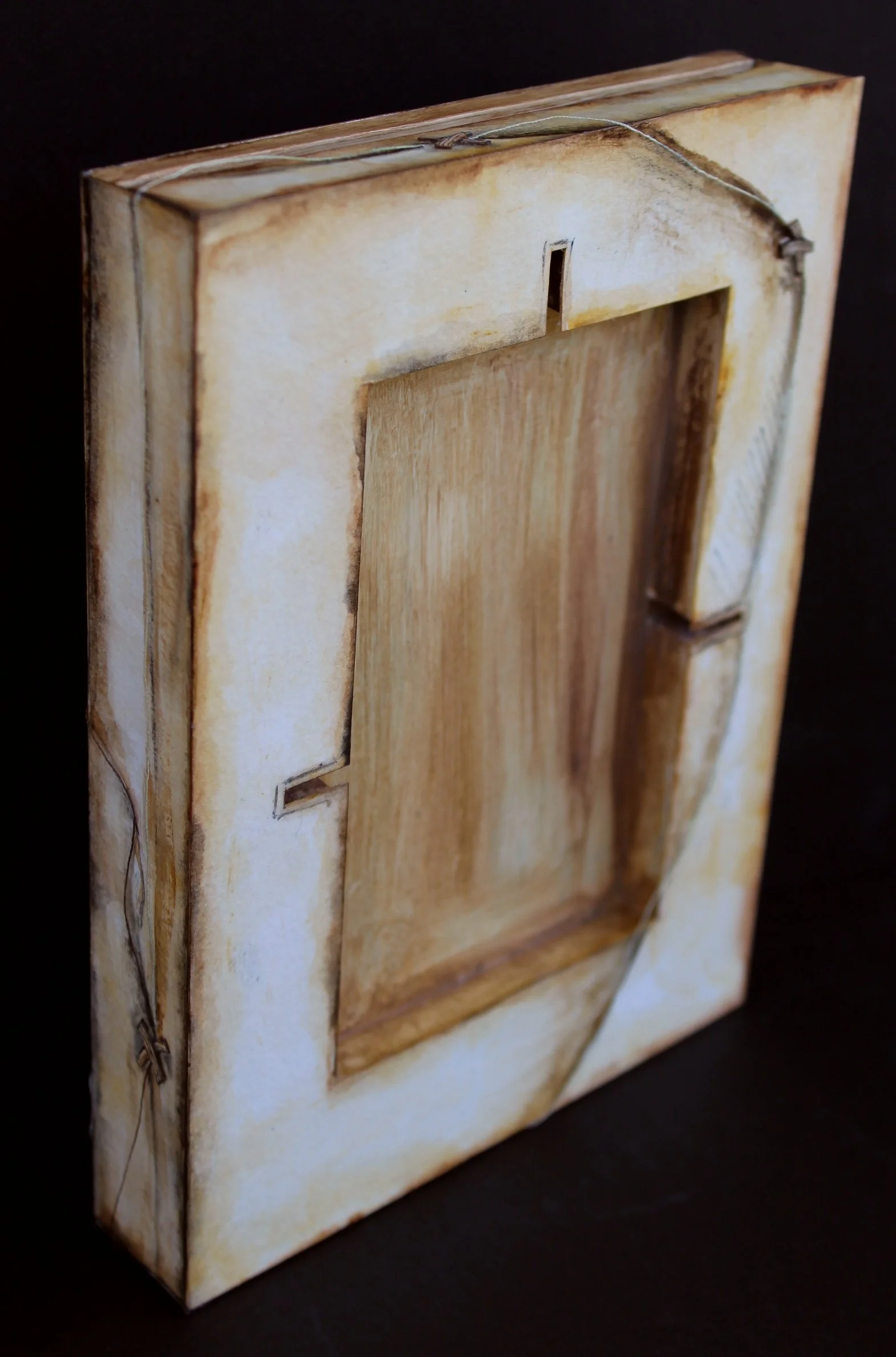 Stitchface, 5” x 7” x 1”, watercolor, acrylic paint, thread, paper, and pen on foamboard and watercolor paper